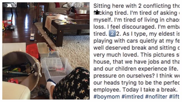 “I’m tired of asking everyone to pick up, including myself,” she wrote. “I’m tired of living in chaos. I’m a horrible housewife. I’m at a loss. I feel discouraged. I’m embarrassed. I want a nap. I’m fucking tired.”
