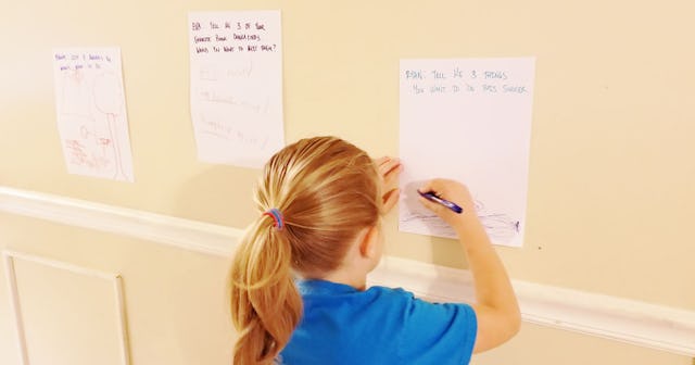 These are the same reasons I wanted to try a “noticing wall.” The key, according to Woo, is to have all of the interactions happen quietly and at the child’s pace and desire. “Don’t talk about the noticing wall, or at least don’t talk about it too much. You don’t even need to give the wall a name. Let it just sit there and be a quiet place for thoughts, hopes and curiosities,” Woo wrote on Lifehacker.