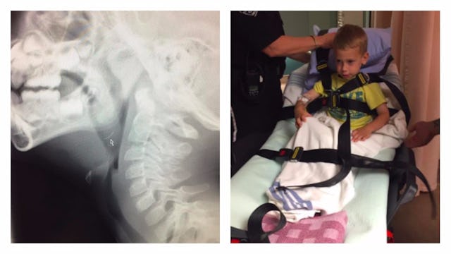 She says for the two hours they were in the hospital her son was gagging and spitting. Eventually, the little boy underwent surgery and had two bristles removed.