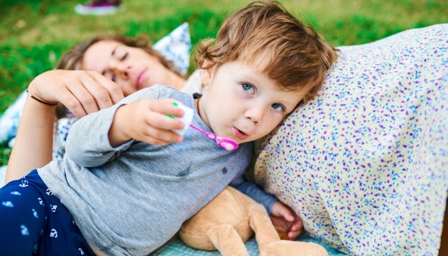 Okay, I frantically thought, I’m a modern woman. Obviously my tummy is squishy, and I should be okay with this. There’s a life lesson for my son I need to be teaching here. One that conveys healthy body image. Or something. I know I should say something.