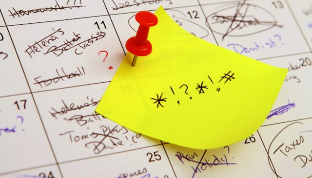 For me, Logistical Overwhelm was prompted by the sheaf of papers the schools handed me, which included calendars showing the days the boys are off or have half days. I entered those dates into my paper calendar (yes, I still like a paper calendar; something about writing things down with a pen soothes me) and then I entered them into my electronic calendar, because having reminders to alert me of events is critical. Then I posted the calendars on the fridge and sent a pic to my husband.