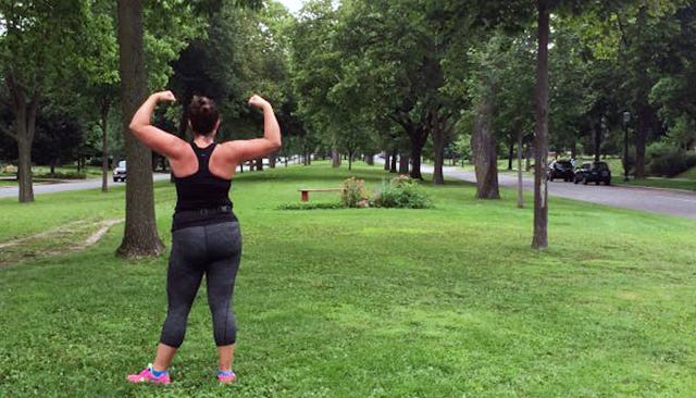 This is my perfect runner’s body. It slowly ticks away mileage, steady and strong. My runner’s body is peppered with stretch marks and folds of skin, but it doesn’t care. My perfect runner’s body doesn’t read magazine covers. It disregards the lies I’ve told it. It is free and ready to run.