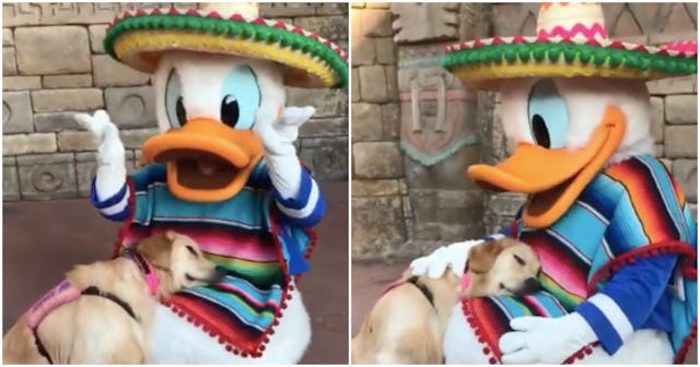 Everyone loves Disney parks. Disneyland and Walt Disney World are magical places for kids and adults alike to get lost in the characters, rides, fireworks, and fun. But apparently, it’s also a very special place for one service dog named Nala. On a recent trip to one of the Florida Disney parks, Nala met Donald Duck and the video of the two of them together will make you ugly cry happy tears.
