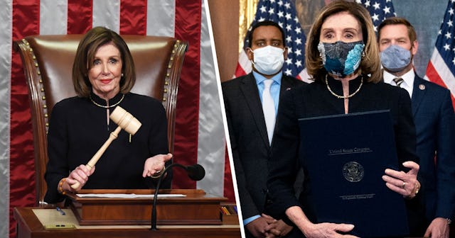 It’s a historic week in U.S. politics — after he incited a mob that stormed and desecrated the U.S. Capitol Building, Donald Trump just became the first president in U.S. history to be impeached twice. The House approved an article of impeachment Wednesday afternoon with a surprisingly bipartisan vote — 10 Republican members broke with their party and voted in favor of impeachment. So what do you wear to a defining historical event in your country’s political history? If you’re Nancy Pelosi, you just throw on the same thing you wore last time this happened.