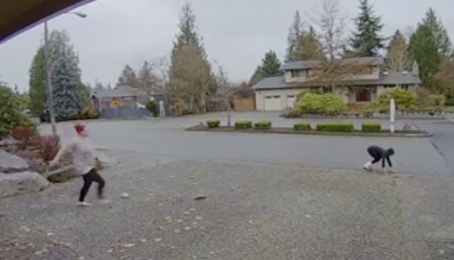 This package thief got a little more than she bargained for when she came across a family’s nanny while trying to steal a package off their doorstep. Surveillance footage from their outdoor camera caught the whole thing on video and you really have to see it to believe it.