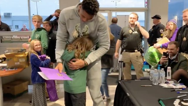 When Antetokounmpo saw what she’d done, he got up from behind the signing table and went over to give Lily a big hug. “Thank you so much, this is amazing. It’s amazing,” he said while Lily cried. “You did all this? Thank you, thank you.”