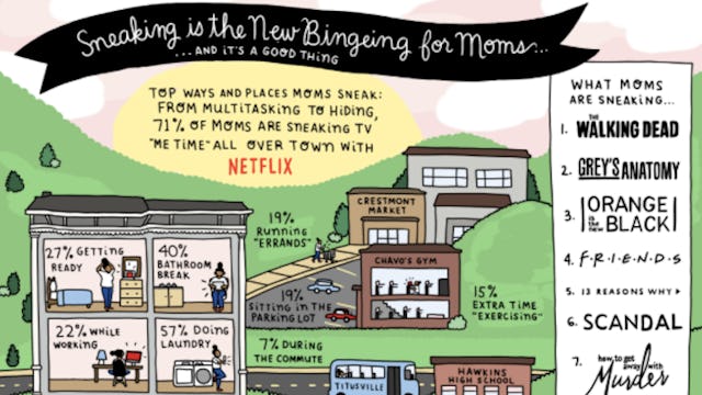 A whopping 71 percent of moms told Netflix that they “sneak” in TV binge time, and the ways they do it are both hilarious and familiar.