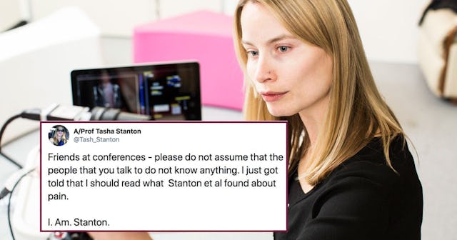 “Friends at conferences – please do not assume that the people that you talk to do not know anything,” she wrote. “I just got told that I should read what Stanton et al found about pain.” Then she dropped the bomb. “I. Am. Stanton.” Bless.