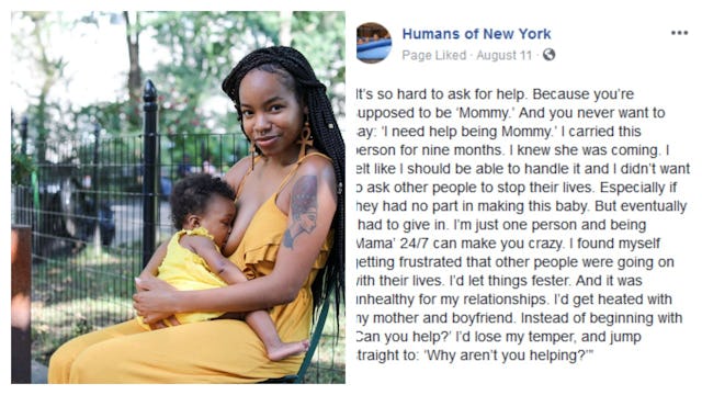 This is the opening line in a viral post from the popular Facebook page Humans of New York. When I first saw the post, I was excited to see a young black mother breastfeeding her little one uncovered. But there is a bigger reason this post is going viral — so many moms have felt exactly what this woman is saying. The fact that she had the courage to say it out loud is what was most striking.