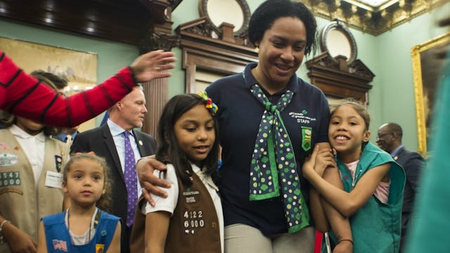 The owner of the building where Burgess was living decided to sell it, and she wasn’t able to find a new apartment for her family. So Burgess and her five kids, three of them girls, moved into an old Sleep Inn that the city had repurposed as a homeless shelter. Burgess, who started a job with the Girl Scouts of America soon after, had an idea: She wanted to start a Girl Scout troop for girls living in the shelter. The organization gave her its enthusiastic go-ahead.