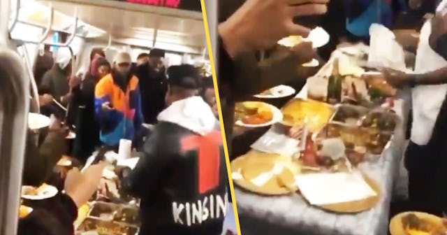People Set Up An Entire Thanksgiving Feast On A NYC Subway
