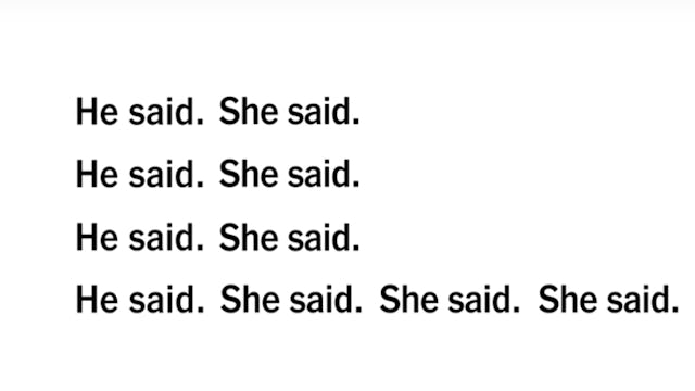 “He said. She said.” Seems like it could be the motto of all women throughout history, huh? The flood of “she said” at the end sends a powerful message: we need to believe women.