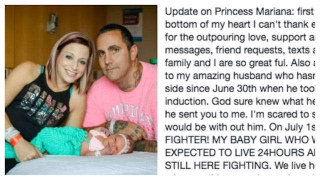Through it all, they never gave up hope. “I love you BABY GIRL and your daddy and I will be right here to fight your battle with you.” she said. Friends and family set up a Go Fund Me to help the couple with the unexpected medical expenses.