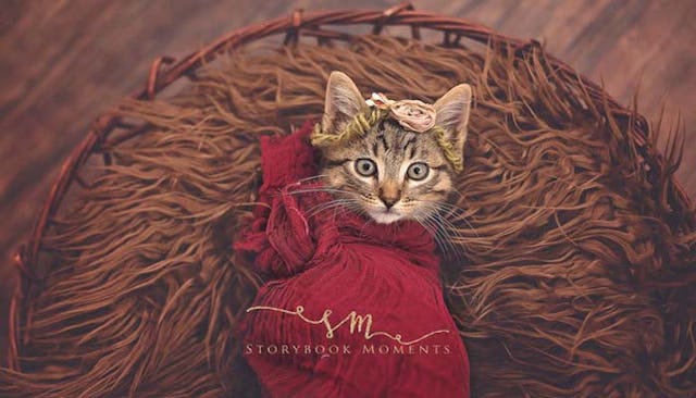 Cassie Borcherding of Storybook Moments Photography is always looking for ways to spice up her Facebook business page. She specializes in family photography, but after a stray kitten wandered into her family’s garage, the adorable little thing became her newest subject.