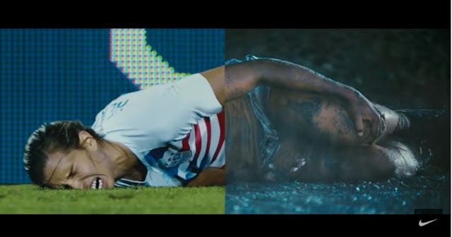 The very cool editing is accompanied by a voiceover from the one-and-only Rapinoe, who delivers the inspiring message we’ve come to expect from Nike: “We’re never alone, and that is our strength. Because when we’re doubted, we’ll play as one. When we’re held back, we’ll go farther and harder. If we’re not taken seriously, we’ll prove that wrong. And if we don’t fit the sport, we’ll change the sport.”