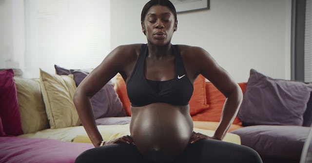 “Can you be an athlete? You, pregnant? You, a mother? That depends,” the narrator says.