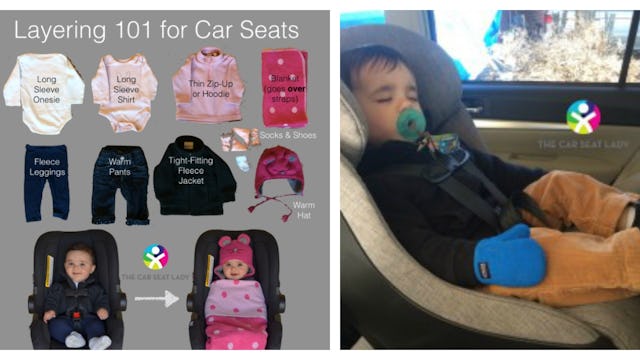 As Alisa Baer, MD (awesome pediatrician and car seat safety expert behind The Car Seat Lady) explains on her site, most winter coats and snowsuits add about 4 inches of bulk to the car seat harness straps. Sleeping bags like the “Bundle Me” are also problematic because the thick layer behind the back adds extra slack to the harness.
