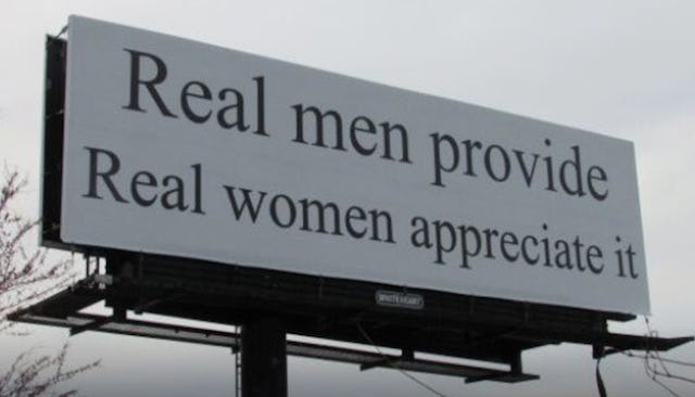 The message reads, “Real men provide. Real women appreciate it.”