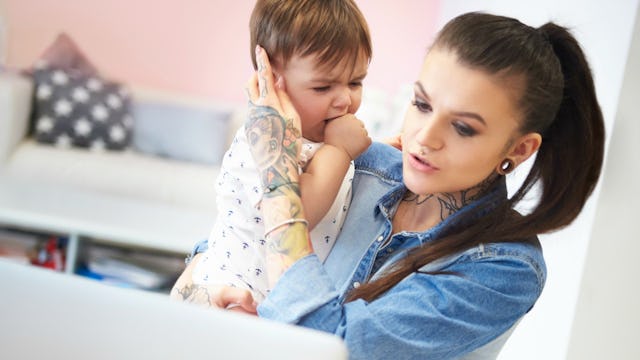 Yup, that’s right. The girl with the half-shaven head, wild-colored hair, and overall badass appearance isn’t shoving jewelry through her toddler’s ears.
