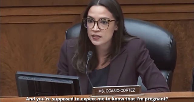 Ocasio-Cortez continued: “Six weeks pregnant—and it’s shameful that this education needs to happen, because this conversation shouldn’t even be held in a legislative body—six weeks pregnant is two weeks late for one’s period.”