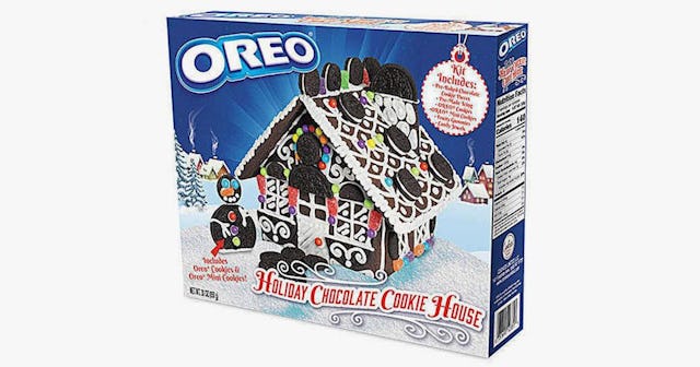 “Get the family together this winter for some afternoon fun!” the kit’s description reads. “This kit includes everything you need to build and decorate your very own Oreo Holiday Chocolate Cookie House.”