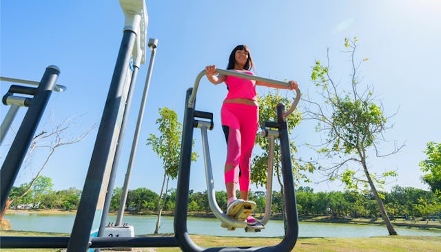 It’s fairly easy to find an outdoor fitness facility nearby if you live in a metropolitan area (just search “public fitness parks near me”), but for those of us in smaller towns, the option isn’t ruled out. You can petition your city council or department of parks and recreation to bring a similar setup to a park near you. If you need help, Playcore — a manufacturer of outdoor fitness equipment — has a simple form on their website that you can fill out to access the proper contacts, learn how to pitch the idea, and download research that can help you to support your case.
