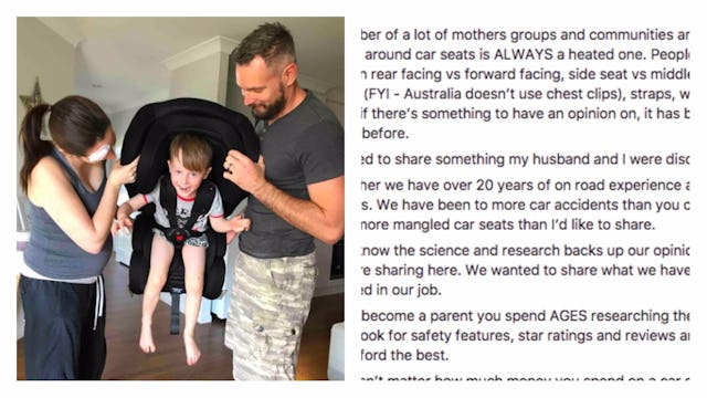 An Australian couple, both paramedics, took to Facebook this week to demonstrate exactly how important it is that a child be in a safe car seat with the straps properly adjusted.