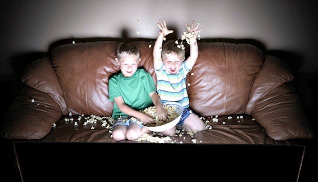 This might be the only time my kids sit still all day. Put a bowl of buttery popcorn in front of them and they might even be quiet too.