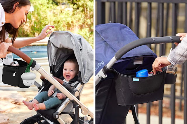 For a stylish stroller caddy that looks as good as your UPPAbaby, go for this tried-and-true Itzy Ritzy fave. The faux leather caddy in a colorblock design honestly looks like a chic belt bag, and it maintains an impressive overall 4.8-star rating with over 5,000 reviews; it also comes in a few other chic variations, including a quilted version with gold hardware. You’ll also appreciate the cup/bottle holders, a zippered pocket, adjustable hook-and-loop closure straps, and that it easily wipes clean.