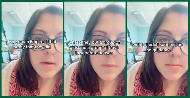 "My Roman Empire is that study that they did where they put a group of girls and a group of boys in separate houses without adult supervision and guidance just to see what they would do," posted Caitlin Dawson Brown (@dawsondoeslife) on TikTok.