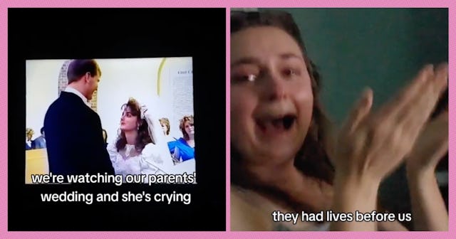 One grown daughter’s epiphany that her parents are actually real people was caught on film when her sister recorded her emotional reaction as the two watched their parents’ wedding video.