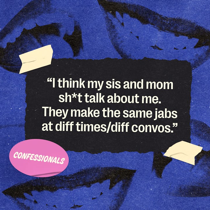 I think my sis and mom sh*t talk about me. They make the same jabs at diff times/diff convos.