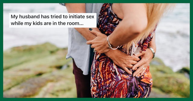 “... multiple times he has tried to initiate sex while they are sleeping with us or under a blanket while we are all watching a movie. It bothers me very much and in the moment I tell him to stop while the kids around. It gives me the hugest ick and I don’t think he understands which to me is common sense?” she wrote, before noting that there are other ways to lay the foundation for intimacy in the future without being totally inappropriate.