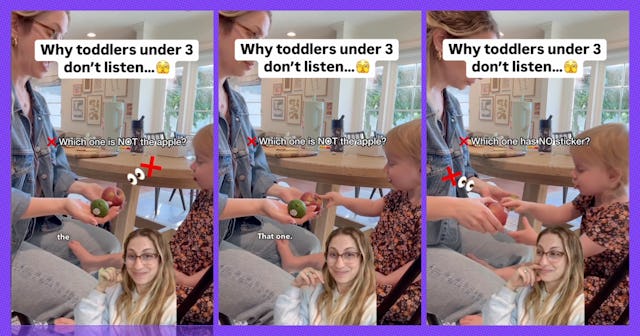 “Did you know that toddlers under three do not fully understand the words “no” and “not” in sentences?” she asked. “I'm a speech therapist, and I'll prove it. Watch this.”