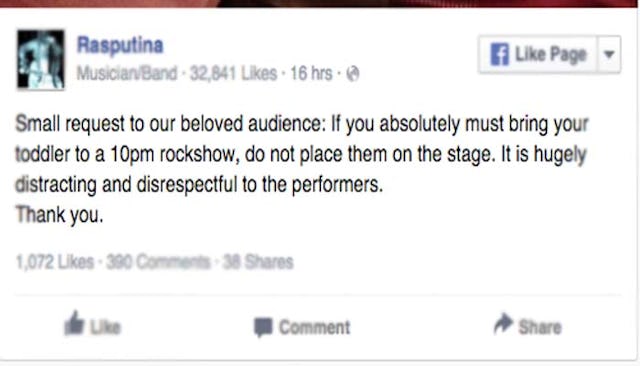 You know a great place for a toddler? A loud rock show at 10 p.m. — said no sane parent, ever. This weekend, parents exercised some epically bad judgment and were called out by the performer they paid to see.