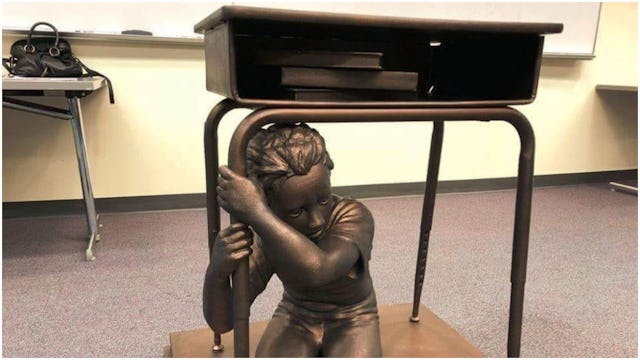 The father of a Parkland shooting victim created a gut-wrenching sculpture of a child hiding under a desk