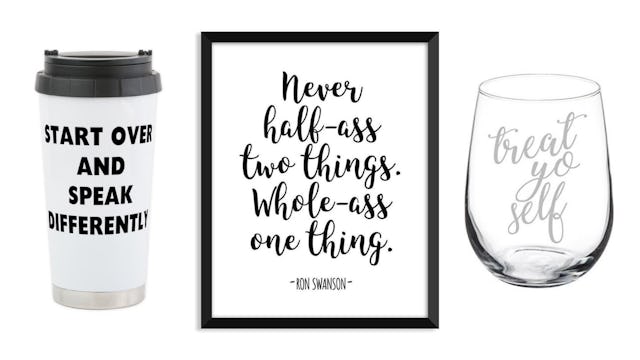 For Donna Meagle fans, there’s this stemless Treat Yo’ Self Glass which is great for sipping on whatever your heart desires.