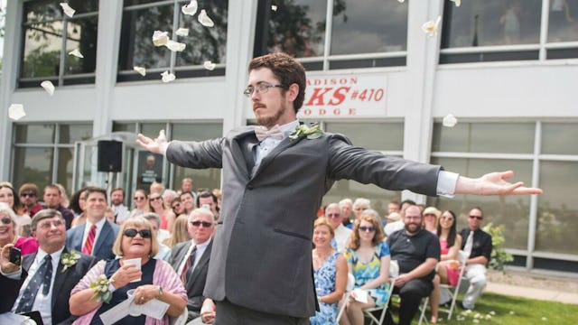 When a couple asks you to play a role in their wedding, you do it. Even if the dress is hideous and the colors make you look like crap, you say ‘yes.’ But what if you’re a grown-ass man asked to play the gender-bending role of flower girl?