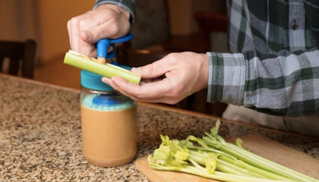 If you’ve ever worked with peanut butter, you know how annoying it can be to spread it on apples or grapes (don’t knock it until you try it), and getting it smeared evenly into the crevice of your celery for the perfect “ants on a log” can be quite the undertaking. This is all aside from the fact that washing utensils covered in the yummy goo is basically one of the worst kitchen chores known to man.