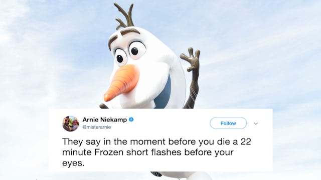 This is all good stuff, but what moviegoers don’t expect is that in order to get to Coco itself, one must sit through not only the previews, but then a 21-minute short titled Olaf’s Frozen Adventure. Do you have any idea how hard it is to keep little kids entertained for 40 minutes before their movie even starts? After they’ve blown through all of their candy? It’s a goddamn nightmare.