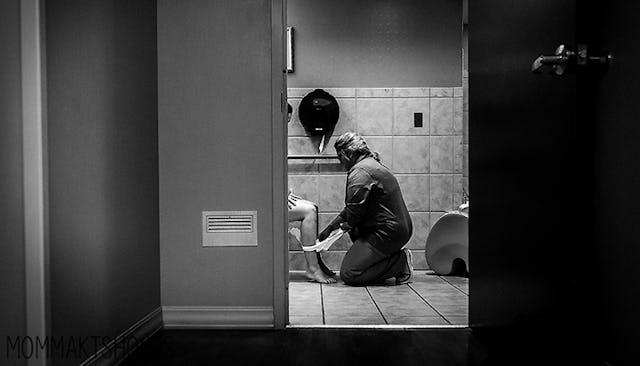 How many of you have been helped to the bathroom by a nurse who patiently waited with you in a moment when you were scared and in pain? How many of you were shown just how to use the mesh underwear and giant pads by a nurse with a calming sense of humor? How many of you witnessed nurses cleaning up after you in the bathroom — at moments when your modesty had to be thrown completely out the window? One writer reminded us this week just how amazing nurses are, by sharing a viral photo that captures that intimate time — between women and the women that care for them after labor — so well.
