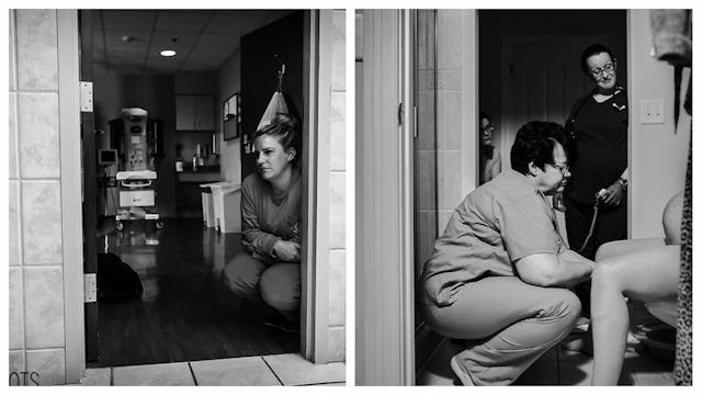 Lacer pulled together images from several birth shoots to make a portfolio that really shows just how nurses are there for women in labor through some very intimate, scary times. And it is powerful.