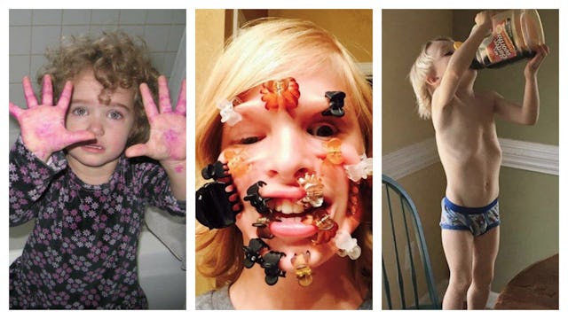 Sure, we all love our kids. But we also all have moments (that’s moment with an “s” because they occur so many more times than once) when our kids do shit so ridiculous that all we can really do is whip out our phones to snap a picture. We have to laugh, or we will cry.