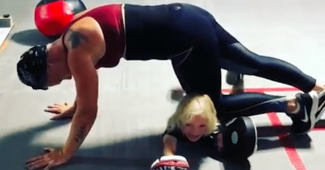 So while working out with a toddler underneath you isn’t necessarily the most peaceful thing ever, Pink shows us that we’re not alone in our interrupted workouts — and that it’s really not the worst thing in the world.