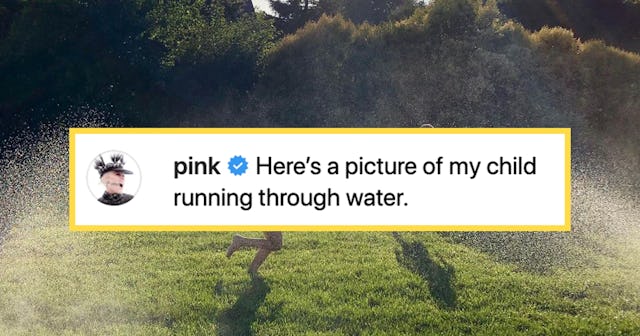 The image shows Willow and another child enjoying a carefree summer day in the sprinkler, as all kids should in July. But Pink’s sarcastic remarks show that she understands that many of her followers won’t even notice the sweet childhood innocence the snap conveys — they’ll just be picking apart her parenting and making dumb comments.