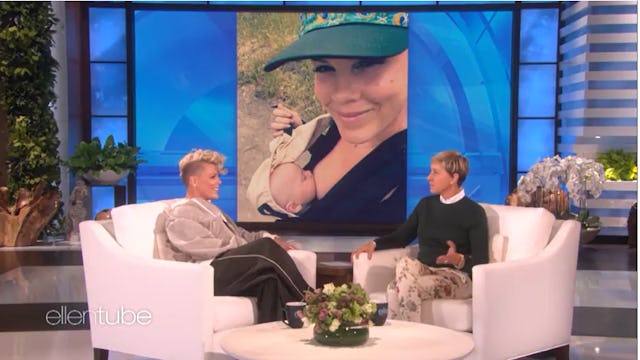 Pink appears on “Ellen” and perfectly sums up why shaming women for public breastfeeding is weird