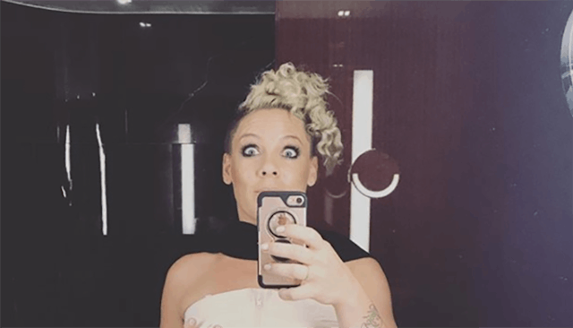 And Pink is a working mom. She shared a photo last night that shows, the struggle is real.
