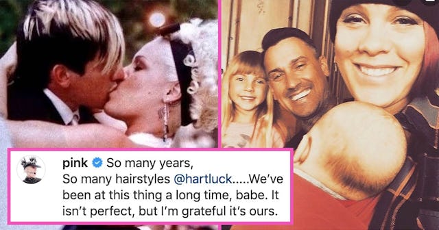 Pink’s marriage to Carey Hart has had its fair share of ups and downs. Years ago, Pink proposed to Hart, they separated a couple of times, reunited, had some kids, and now 14 years later, they’re sharing his and hers gushy Instagram captions about their marriage and family, and we’re honestly happy to see it.