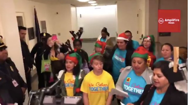 The caroling kids were clearly doing their best to keep things light – as light as things can be when your entire future is at stake – by dressing their protests in the trappings of the season. The decision to leave nearly a million youngsters at risk seems especially heartless during the holidays, and these clever protesters are surely hoping their outfits and songs strike a chord with Speaker Ryan.