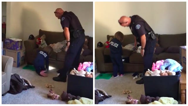 Police Officer Helps Little Girl Hunt For Monsters In Her House